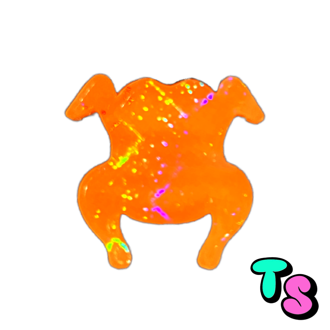 Materials: Crafted from an orange glow in the dark filament with an iridescent finish
