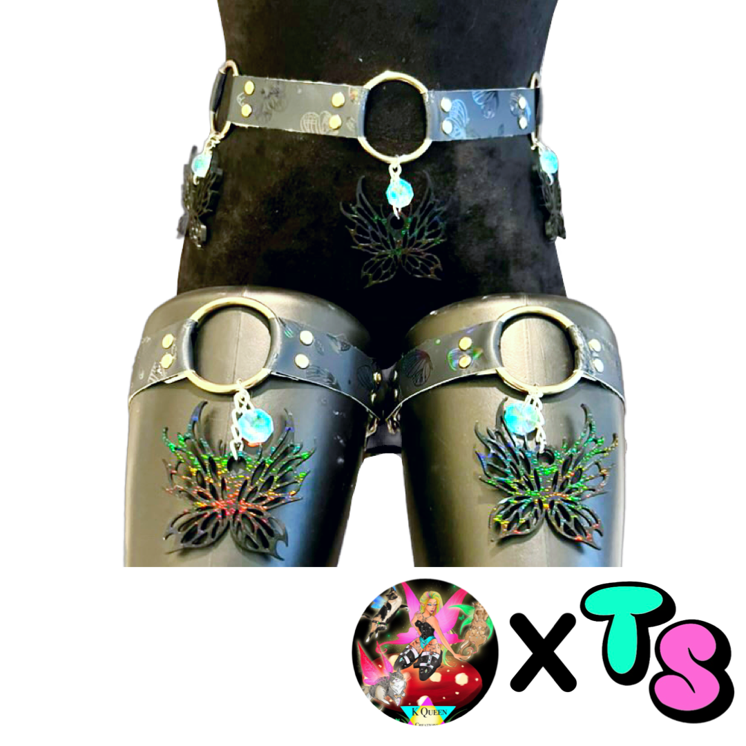 What’s included: waist garter, and thigh garters with glitter straps tailored to your size and embellished with custom 3D-printed pendants